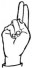 На ћирилици написано МИЛАНА КУЛАШ састоји се из 11 слова [?]. Исписано ћириличном једноручном азбуком за глувонеме: